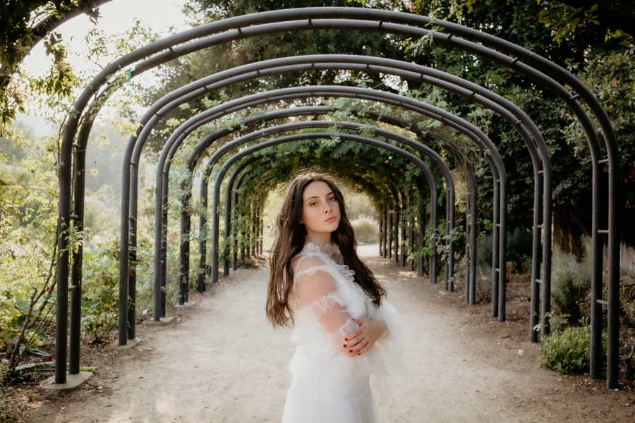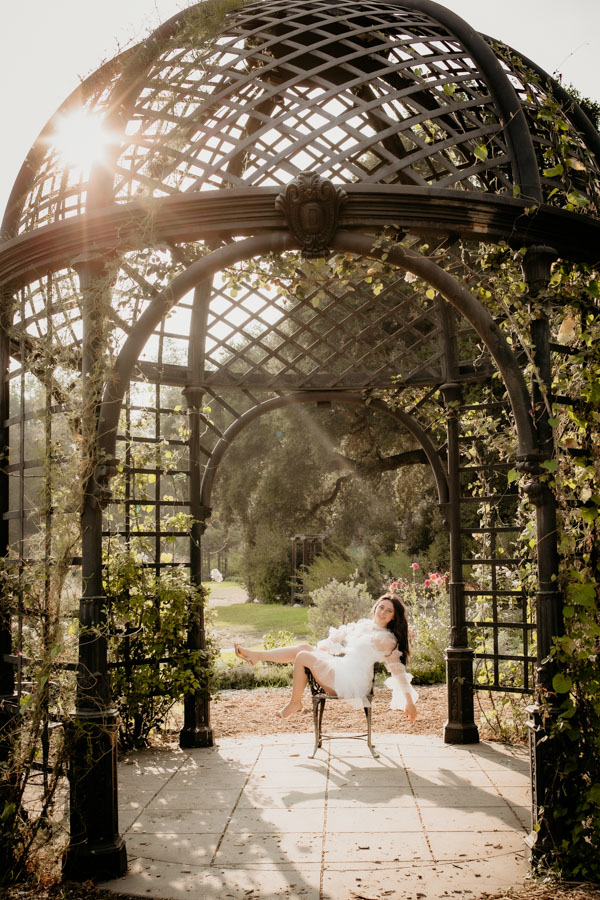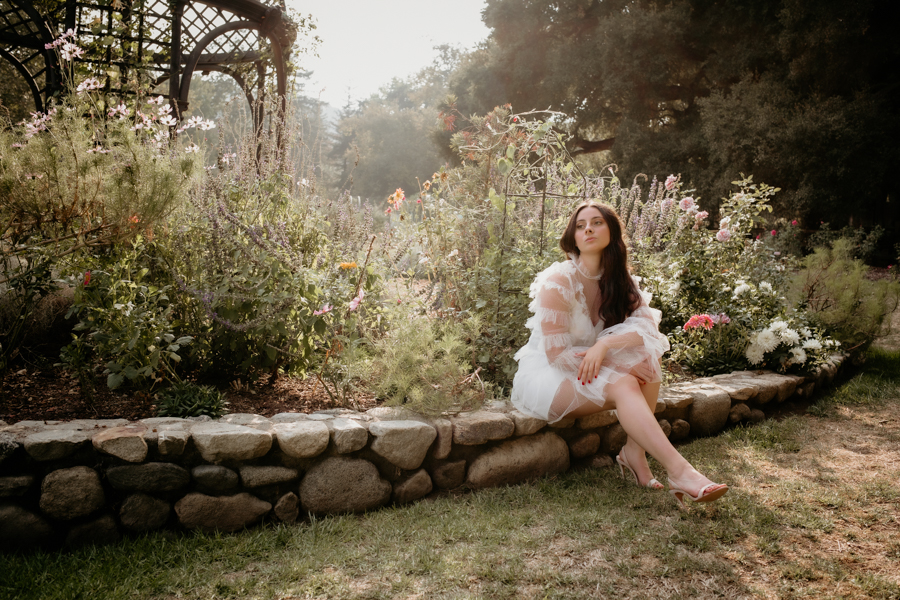 She was specific on liking the wide angle shots showing off the grounds combined with the detail shots showing off her beautiful wardrobe. We were able to use several locations at Descanso, the rose gardens, pond, and courtyard area to create a different look and feel to her session.