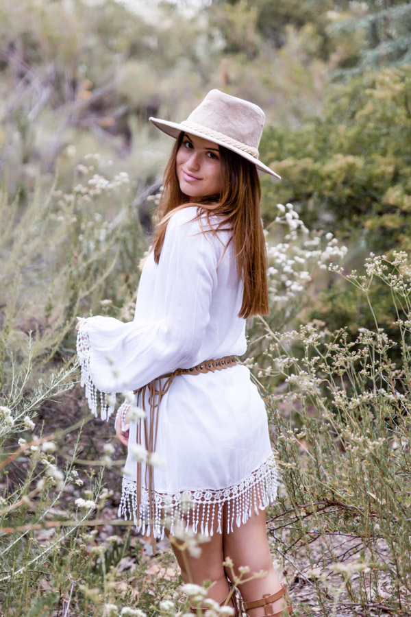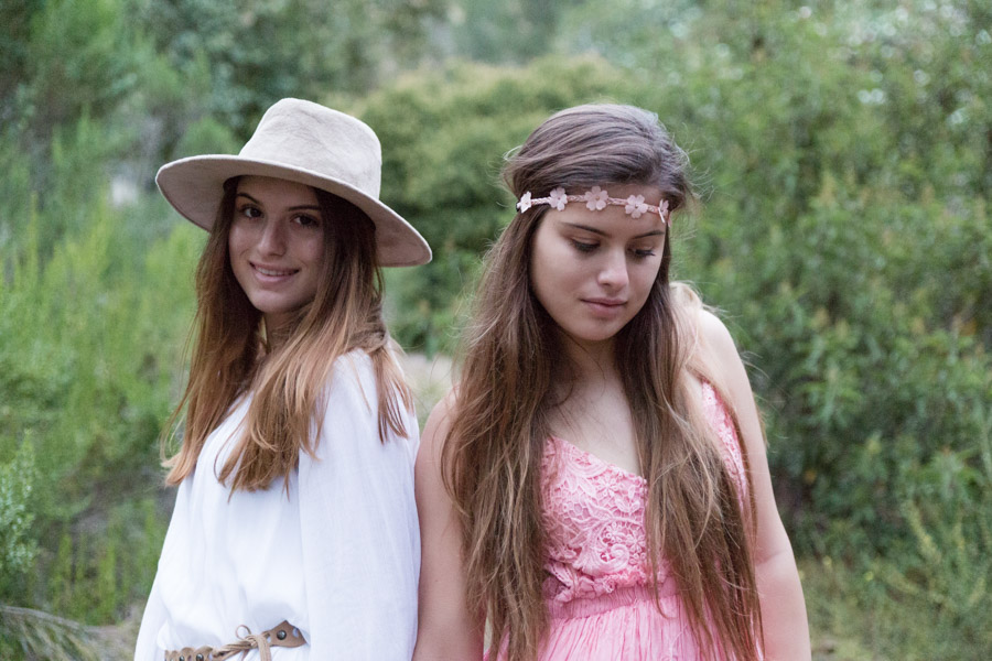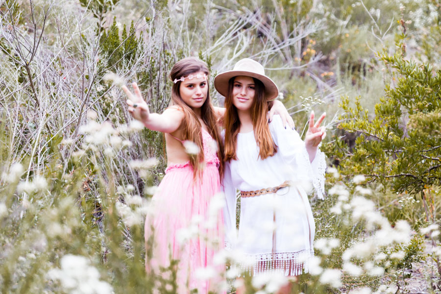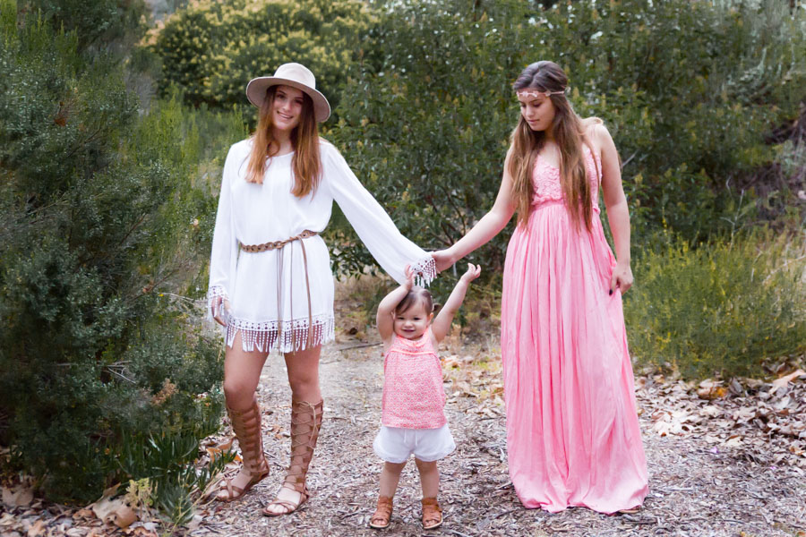 The girls and I talked about what they liked and their style in their consultation session. They said they loved a “Free People – Boho” look! I wanted them both to have their own personal and individual style. They each brought an outfit to the shoot and picked an outfit from my wardrobe closet. Alexa went with a short dress and hat, while Ashlee went with a long backless dress and a flower headband. Being twins, it was great seeing their individuality shine through!