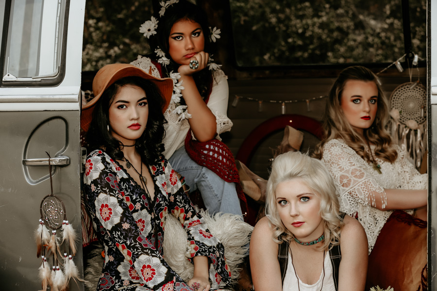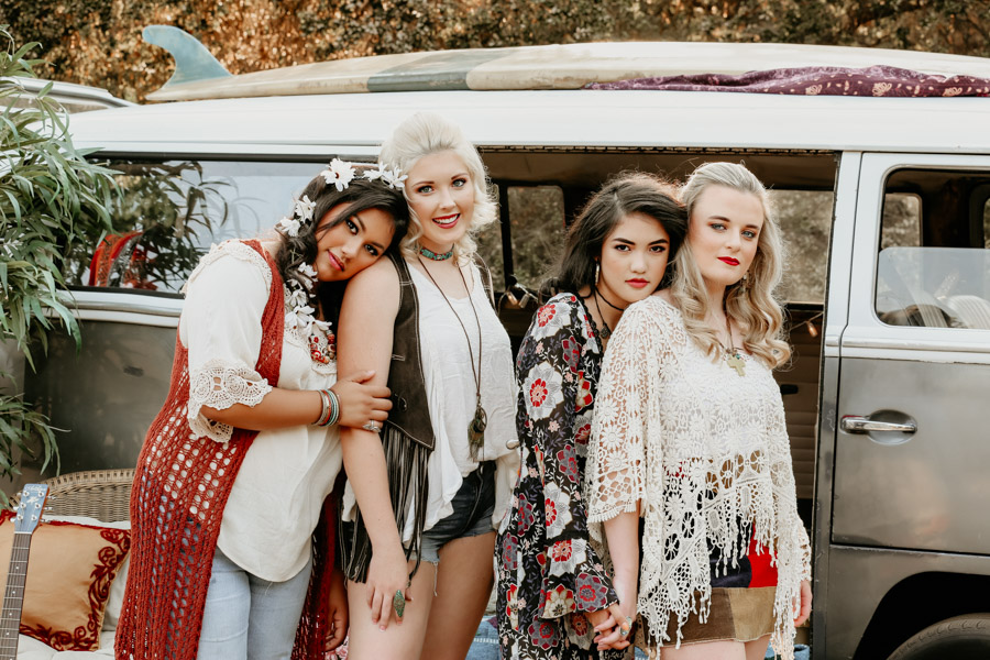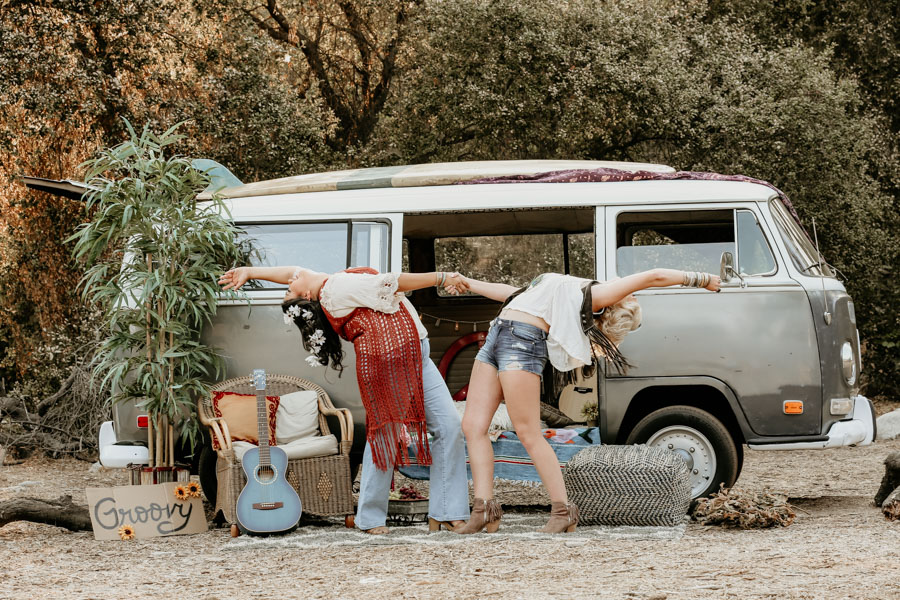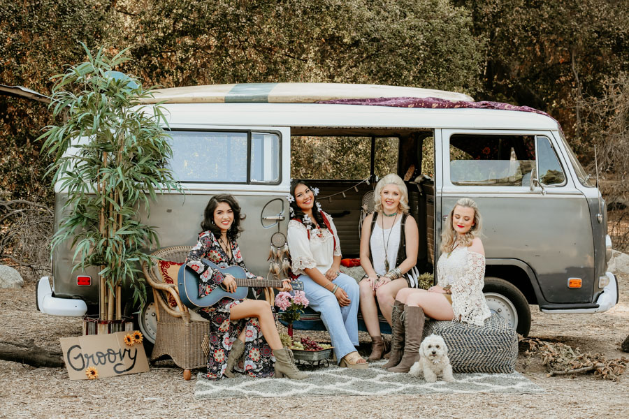 Love these girls, My Senior Model Team! This was our first group shoot. Everything about it was so much fun! Who doesn’t love a VW Bus and a throwback to the ’70’s! I had so much fun shopping for their wardrobe and accessories. What I couldn’t find in stores I found in MY closet! Turquoise, fringe, crotchet and flowy dresses speak to my heart… Anyone who knows me, knows I’m a boho girl at heart! I really wanted to create a fun vibe for my model team. Thanks to my supporting cast of behind the scenes assistants we had great music and props to add to the atmosphere! I wanted to keep our session local so I found I great spot not far from Descanso Gardens at the Hahamonga Watershed Park in Pasadena. It gave me a rustic setting with a perfect sunset!