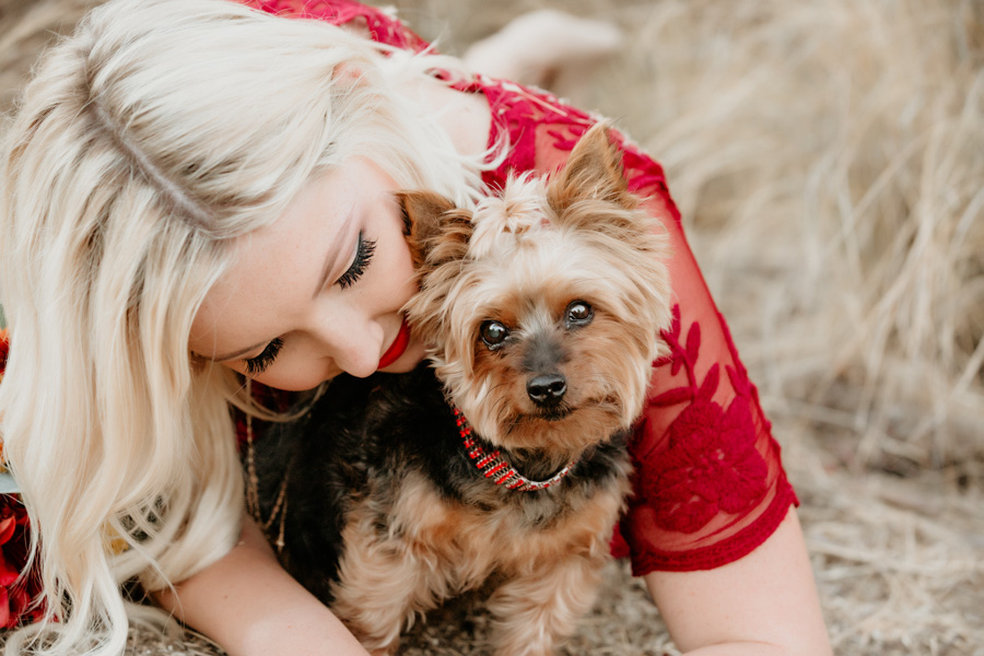 We chose three locations for her senior portraits. First location, a football field for her cheer pics. Then we found a great spot with trees and flowers for something a little more casual, and lastly a great organic field that would show case her gorgeous red dress!!! Raven also wanted some pictures with her favorite pup, who was equally adorable in her red sparkly collar!!!! It was so much fun creating these Milestone Senior Memories for you Raven… XOXO