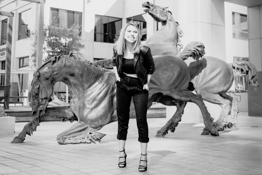 Loved this Senior Session shot with Amanda. She rocked it and owned it! We started the morning shopping in “My Senior Closet” for outfits and accessories! Amanda was so much fun to work with. Our first location was downtown Glendale for a fashion inspired theme.She followed direction and brought her own style and personality into the photos. However, she was a little stunned when I stopped the “unicorn man” on his way to sing a telegram for a quick photo op! She played along perfectly and we got a great shot!!!!