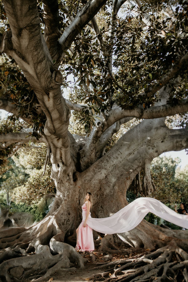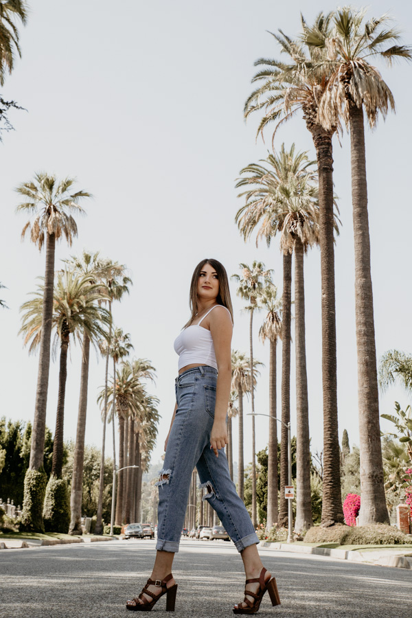 Hailey found me through my Instagram. She messaged me about driving down from Central California to shoot her dream session in Beverly Hills. We did a phone interview, she shared her wishes, I shared some images and ideas with her, and we “clicked!” She sent me some pictures and ideas of what she hoped to capture and I scouted out the perfect spots for us to shoot. She drove down with her mom and sisters, making it a fun girls trip to LA. We started out with hair, makeup and wardrobe at my studio in Glendale. From there we drove out to Beverly Hills hitting all the locations on our wish list. Starting off with the Palm Tree lined streets of Carmemelita and Hillcrest Road. We did our second wardrobe change and drove over to Beverly Gardens Park. We got some great shots on the path and by the Beverly Hills Lilly Pond and famous sign. Next was another wardrobe change and her mini “supermodel shoot” by the huge Ficus Tree in Beverly Hills Park.