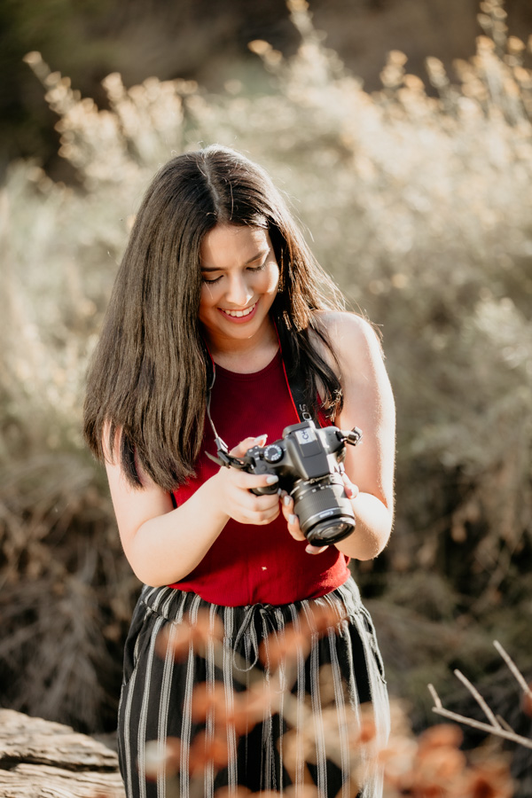 During her pre-session consultation we went over her passions, hobbies, wardrobe options, and wishes for her Senior Session. She came up with all her ideas and shared them with me. She is involved in art and photography and wanted that to be a part of her session. We were going to be shooting in two locations, so she showed me inspirational images of nature and an urban setting. Now it was time for me to find the perfect spots! We shot in Eaton Canyon, Altaden for her nature shots and then bee-lined to Old Town Pasadena for her urban images.