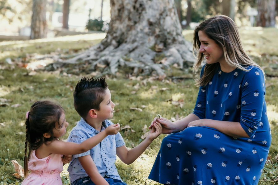 This fun family session took place at The Brand Library Park in Burbank, CA. As soon as we finished our introductions there was an instant chemistry and connection for me with the kids! Wyllie eagerly shared his stories about his love of nature and we shared some fun talks about National Parks together. His sister Molly told me she loved flowers, so we decided to pick some flowers for her and to give to mom 🙂