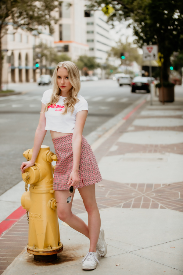 To get ready for Malia’s senior portrait experience, Malia and her mom came over to my studio for their pre-session consultation. We went over Malia’s, AND mom’s wish list, together! As with all my Seniors, their portrait experience is all about showing their uniqueness, personality, accomplishments, and personal style. Malia showed me some images from her Pinterest board which included a fun urban look with high-rises in the background, dance images, and sunset beach shots!