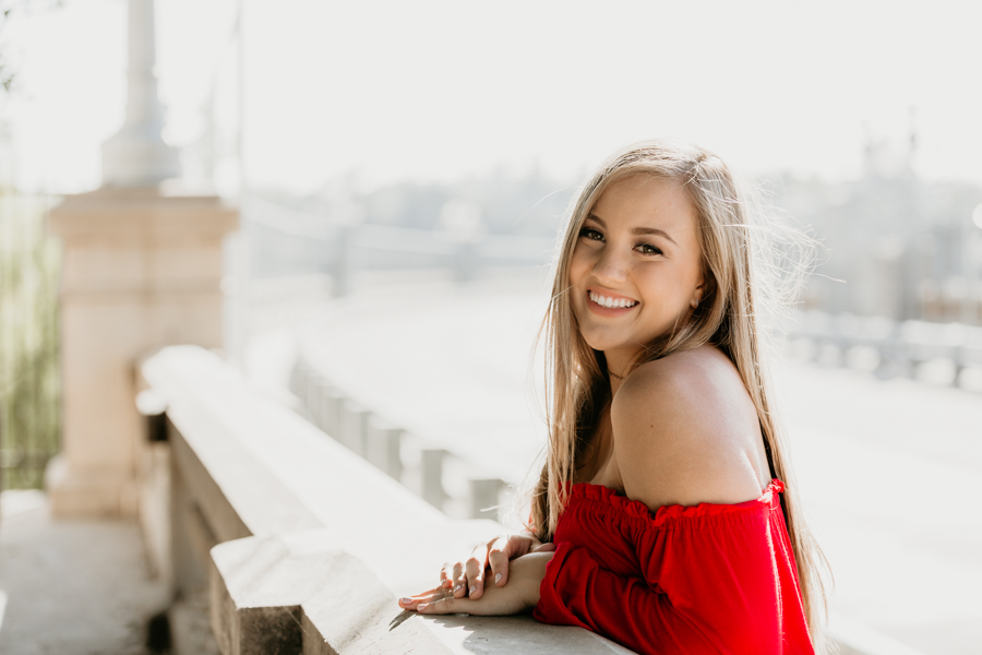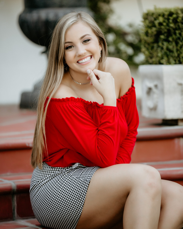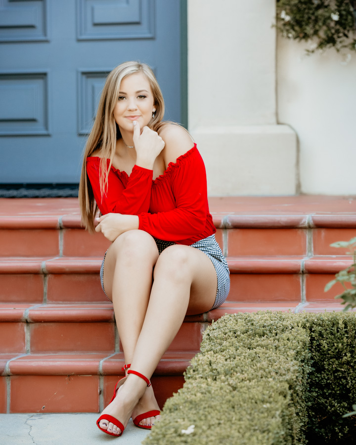 We used two locations to capture Maddie’s Senior Portraits. We started in Old Town Pasadena at the famous Colorado Street Bridge. This was a perfect location for Maddie’s beautiful style and vibe. I love this spot not only for the bridge but the beautiful ivy covered walls and gardens.