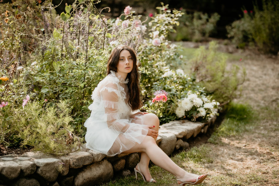 She was specific on liking the wide angle shots showing off the grounds combined with the detail shots showing off her beautiful wardrobe. We were able to use several locations at Descanso, the rose gardens, pond, and courtyard area to create a different look and feel to her session.