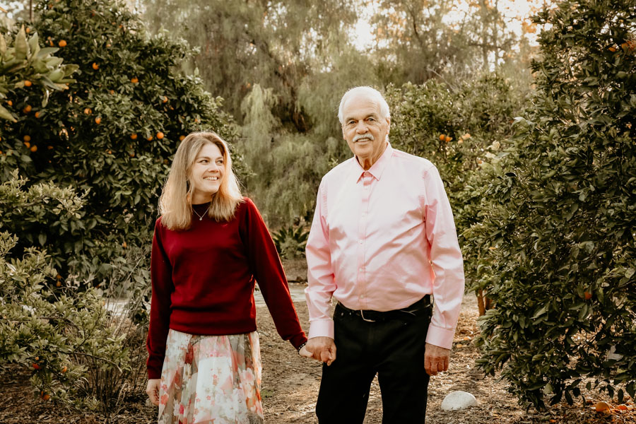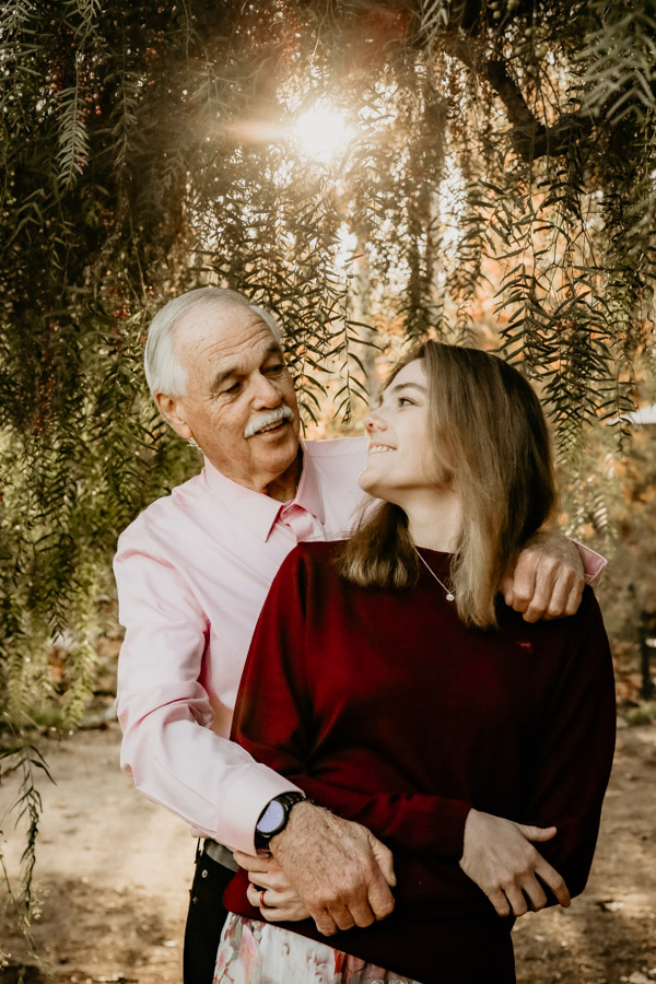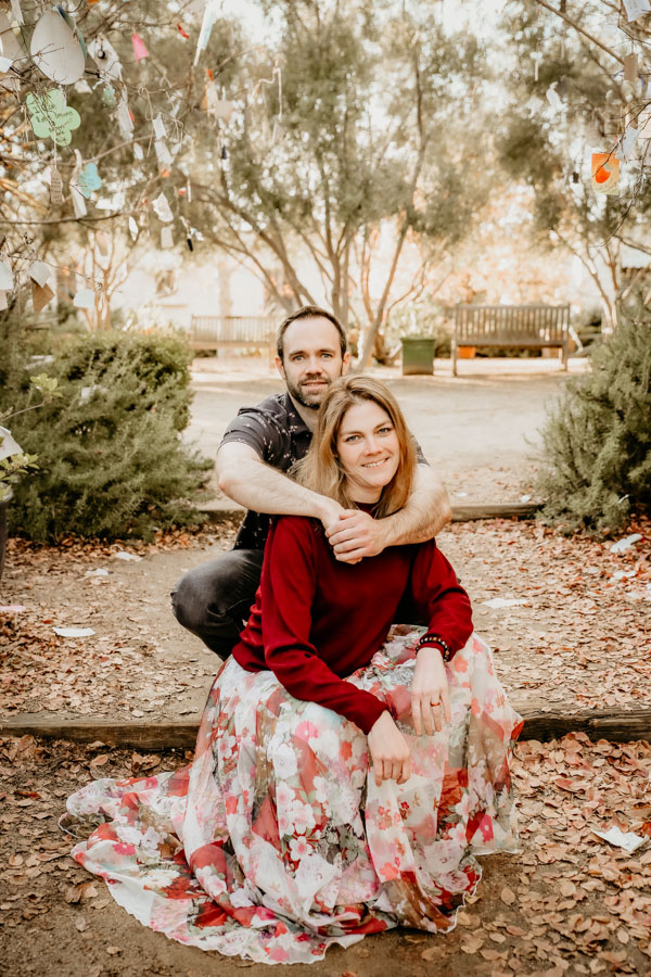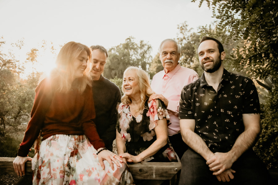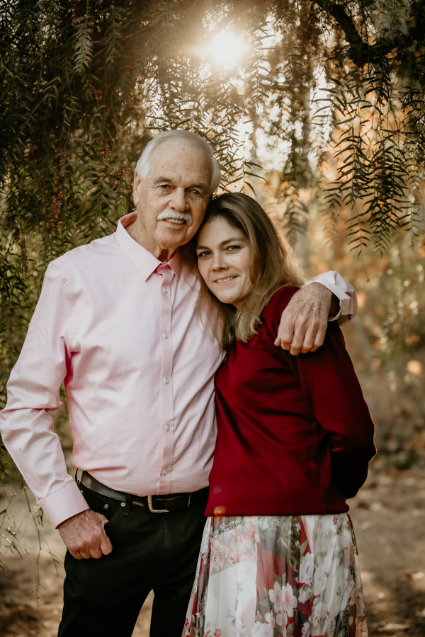 We got so lucky on December 24th to have beautiful skies and a perfect sunset. The days before and after, California had some heavy rains. We caught some special moments of mom and dad on a beautiful bench tucked away in a rose garden. We also had beautiful light in the courtyard, under the willow tree and along the trails for family and smaller group shots.