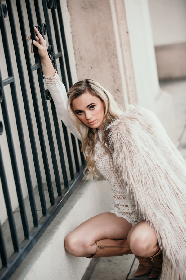 From there we headed to Old Town Pasadena on Colorado Blvd where Megan rocked a lace romper, boots and 1970’s coat.